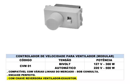 Controle de ventilador Roma com 3 módulos + Placa p/linha Liz Tramontina.