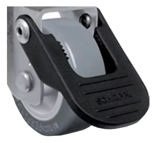 Rodízio giratório GLRO 210 BP, linha leve, construído em chapa de aço, estampado e zincado. Sistema giratório com esferas e placa de fixação e com freio. Indicado para aplicações de cargas leves e moderadas, com tração manual.Roda de borracha injetada com núcleo de polipropileno e mancal de furo passante. Usada para cargas leves e moderadas. Silenciosas, não marcam e nem danificam o piso, resistente a impactos, óleos, graxas e umidade.